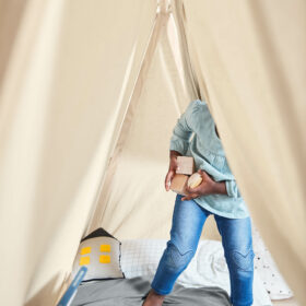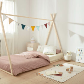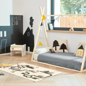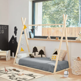 In diesem Tipi Bett aus massiven Eschenholz, werden Deine Kleinen sich nicht nur besonders wohl fühlen, sondern vorallem auch ihrer Fantasie freien Lauf Lassen können. Das Design in Form eines Tipi Zelts, soll Autonomie und Bewegungsfreiheit auf sich ere Weise fördern.