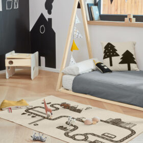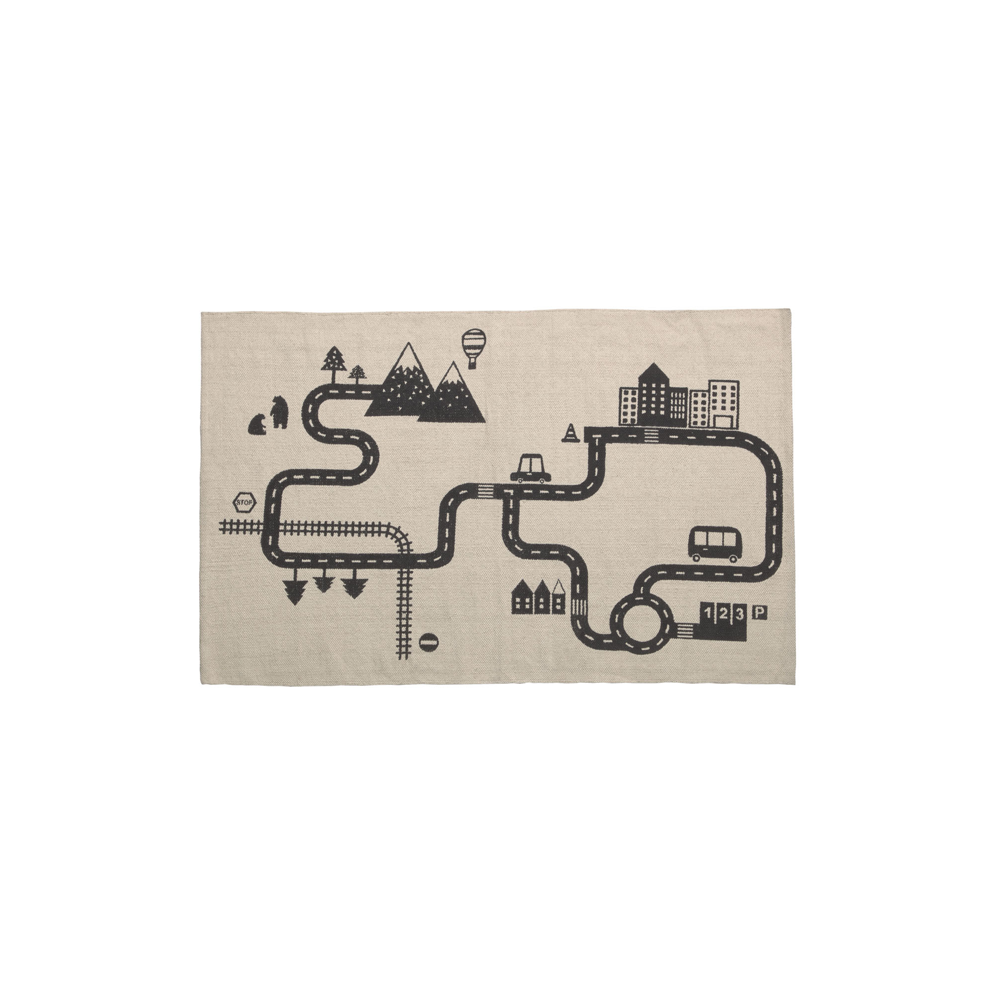 Nisi Teppich, 100% Bio-Baumwolle (GOTS), beige und schwarz, 75 x 120 cm