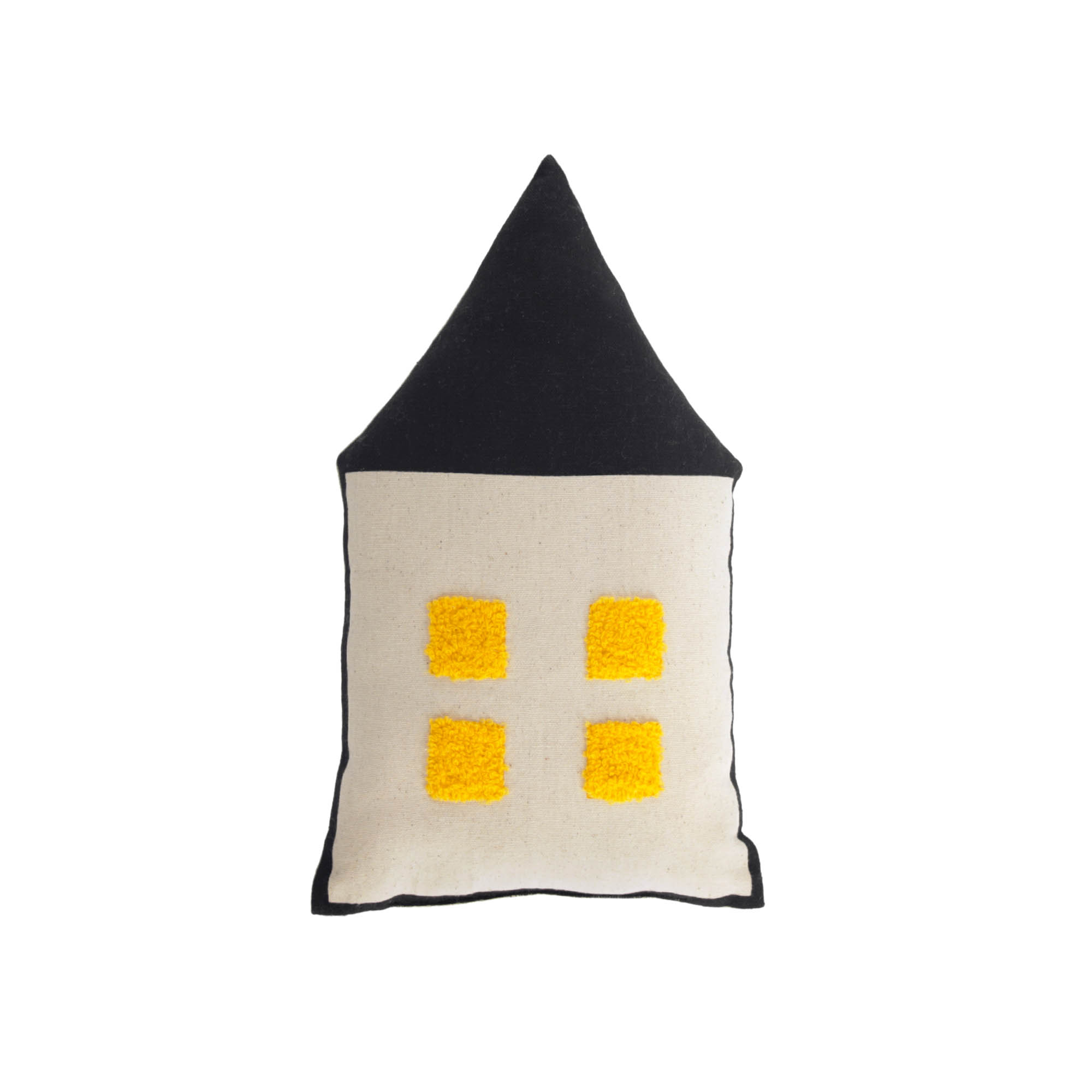 Nisi Kissen, Haus, 100% Bio-Baumwolle (GOTS), schwarz und beige, 35 x 20 cm